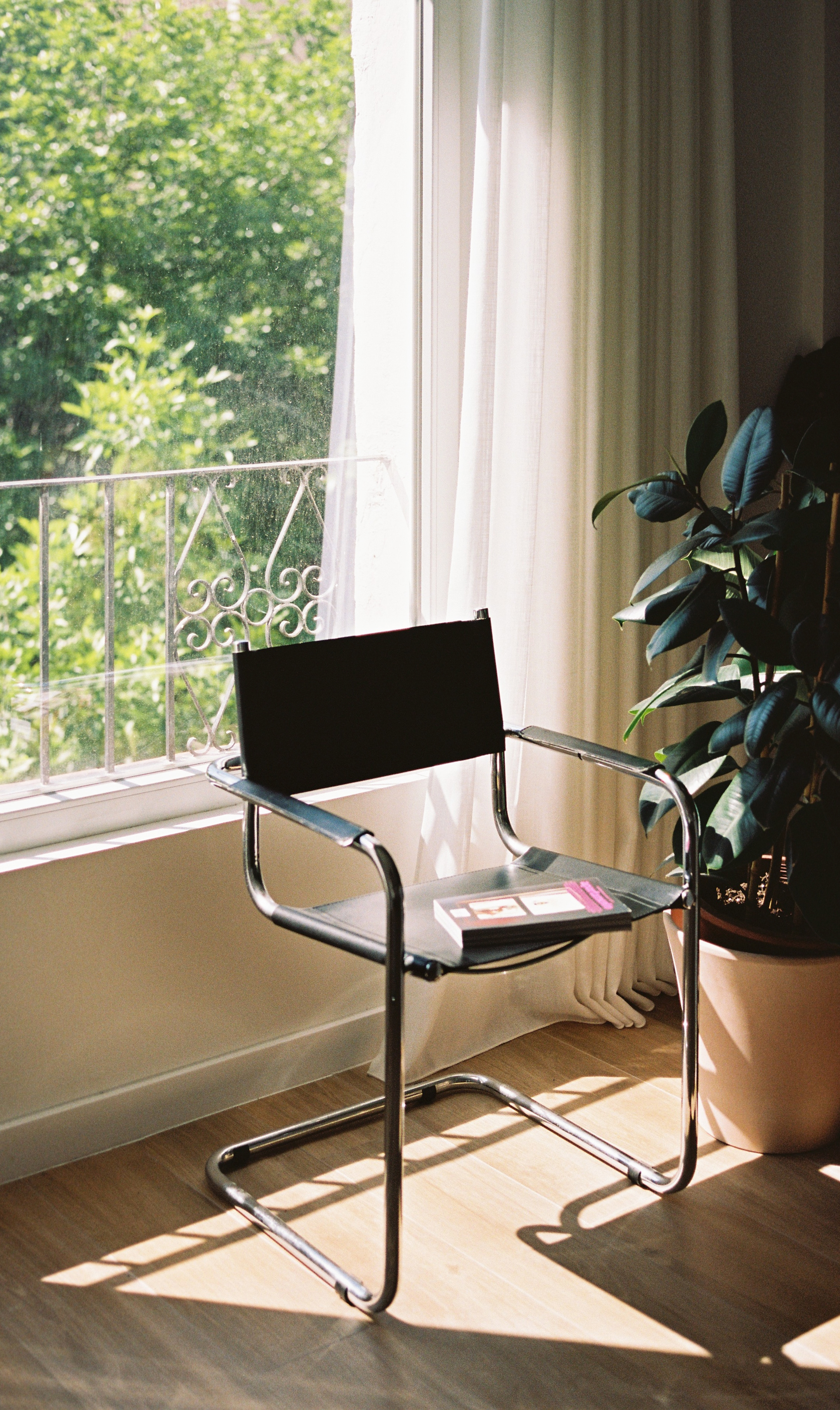 Es precisamente la cocina la que marca la pauta de bandas que articula el resto del espacio. La tercera banda, adosada a la medianera, se materializa como un gran armario de fachada a fachada que cierra la composición. La última habitación disfruta de una terraza, un espacio de desahogo que mira sobre un agradable patio de manzana ajardinado.