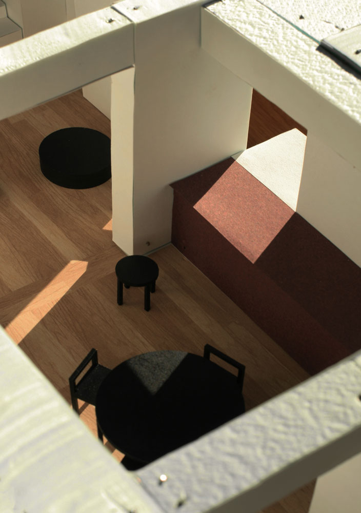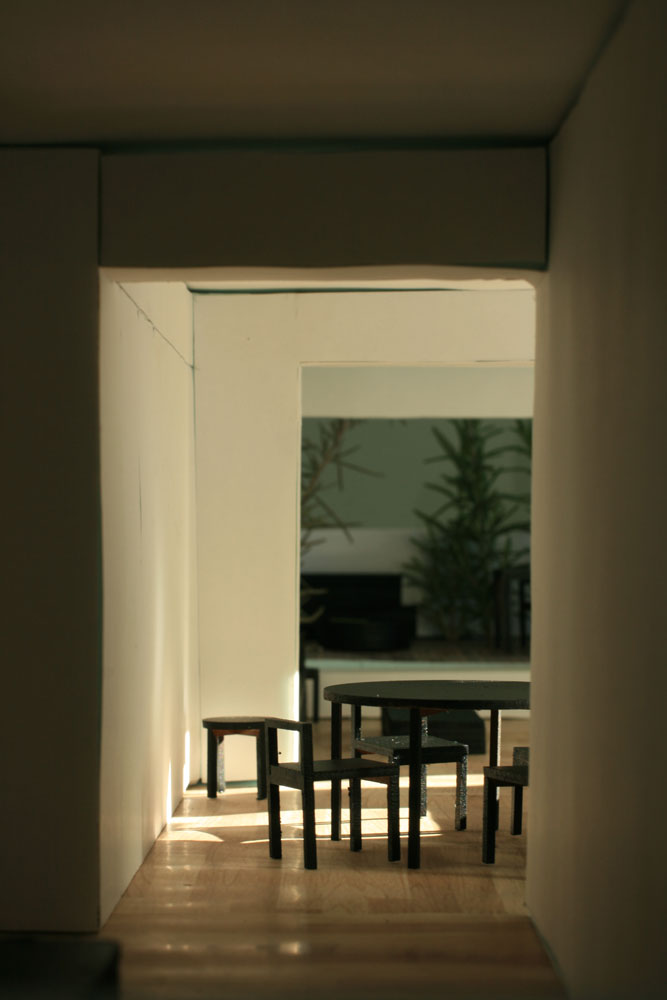 La concatenación de una habitación tras otra queda marcada por umbrales de cierto espesor. Estos ámbitos intermedios preservan el nuevo carácter abierto y pasante de la vivienda, a la vez que ofrecen cierta capacidad de autonomía e independencia de las estancias entre sí.