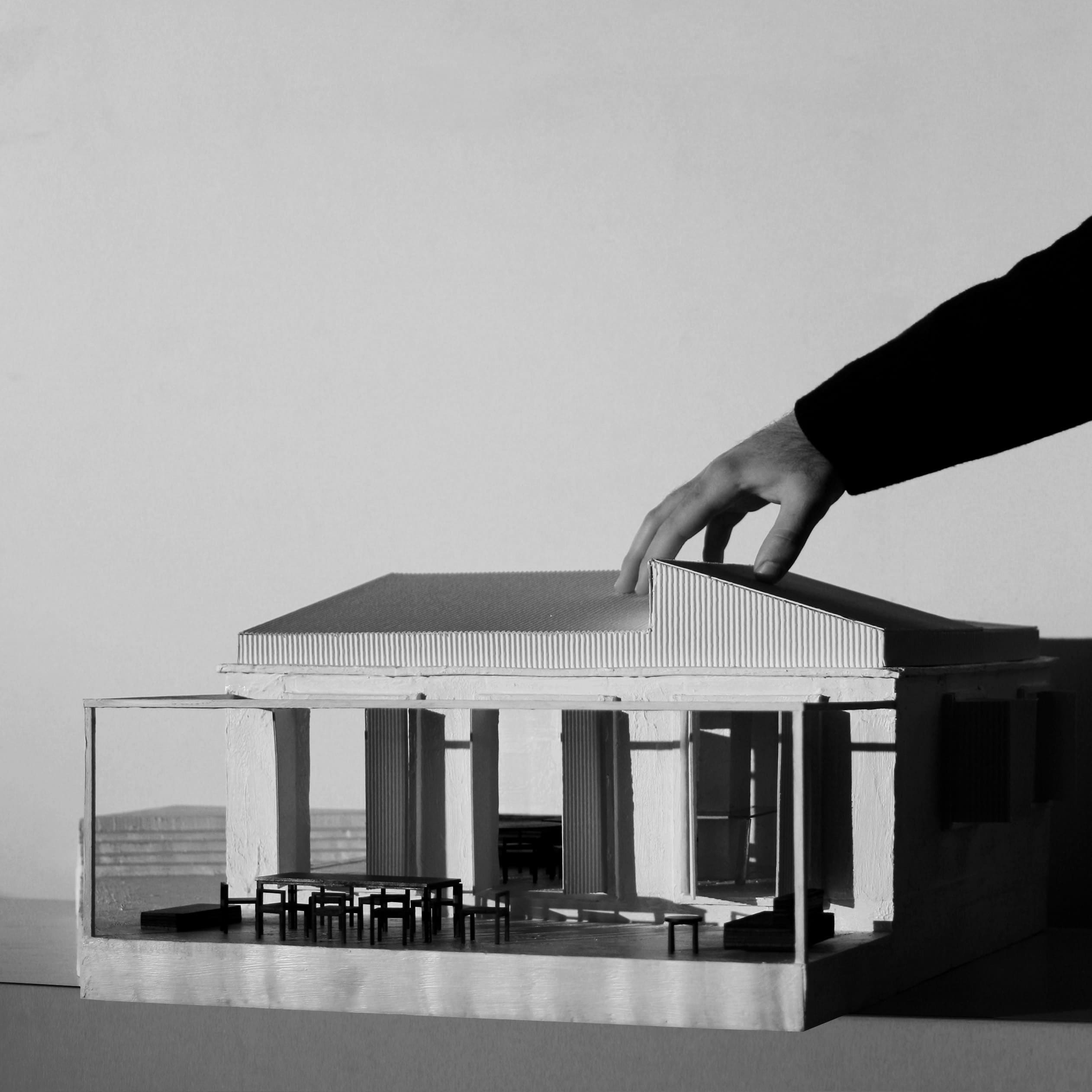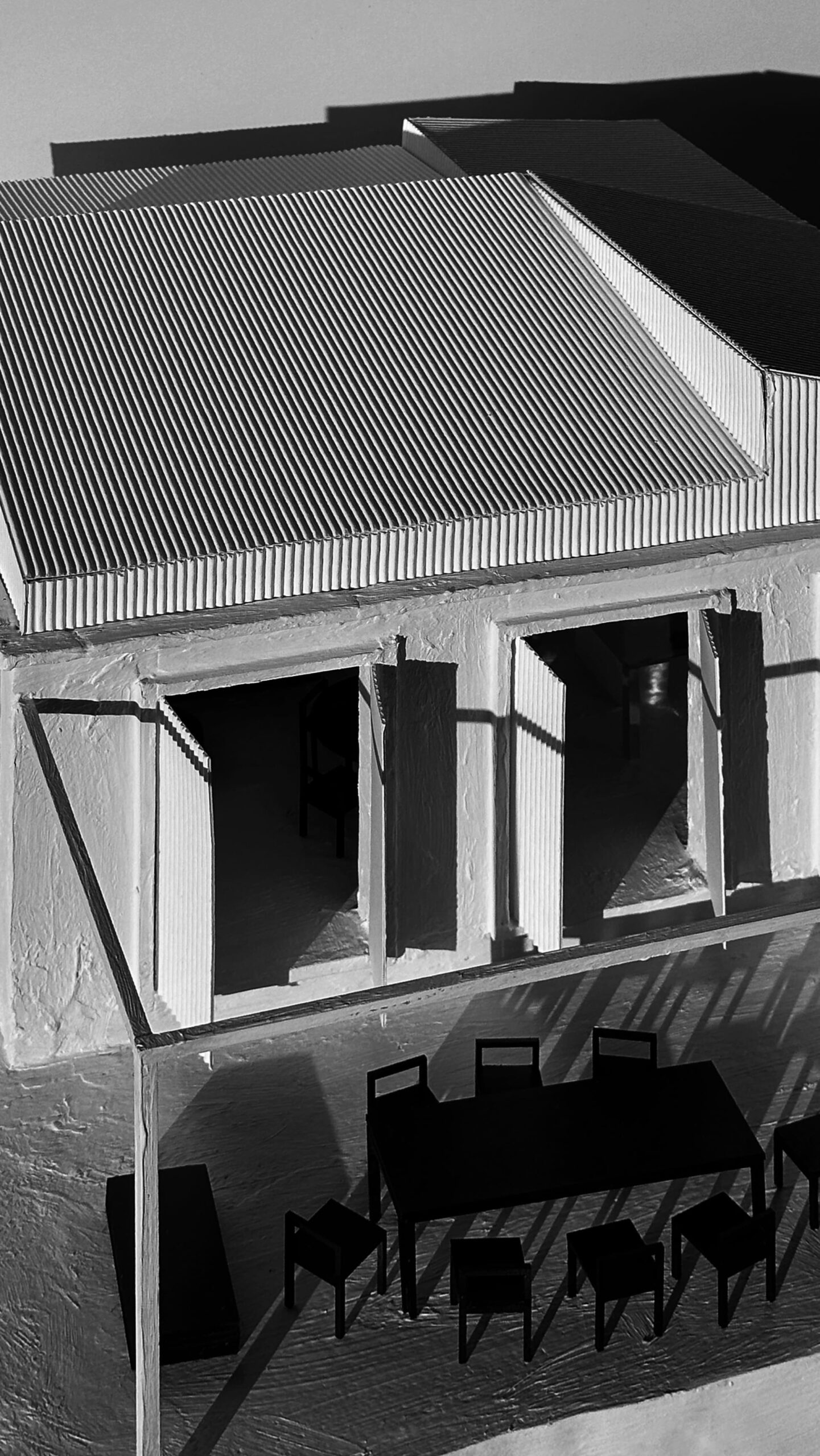 En la pieza situada más hacia el sur se adapta las exigencias del nuevo programa a la estructura muraria existente. Está formada por un muro perimetral y por otro en cruz, desplazado del centro, que genera cuatro estancias de diferente tamaño y proporción.