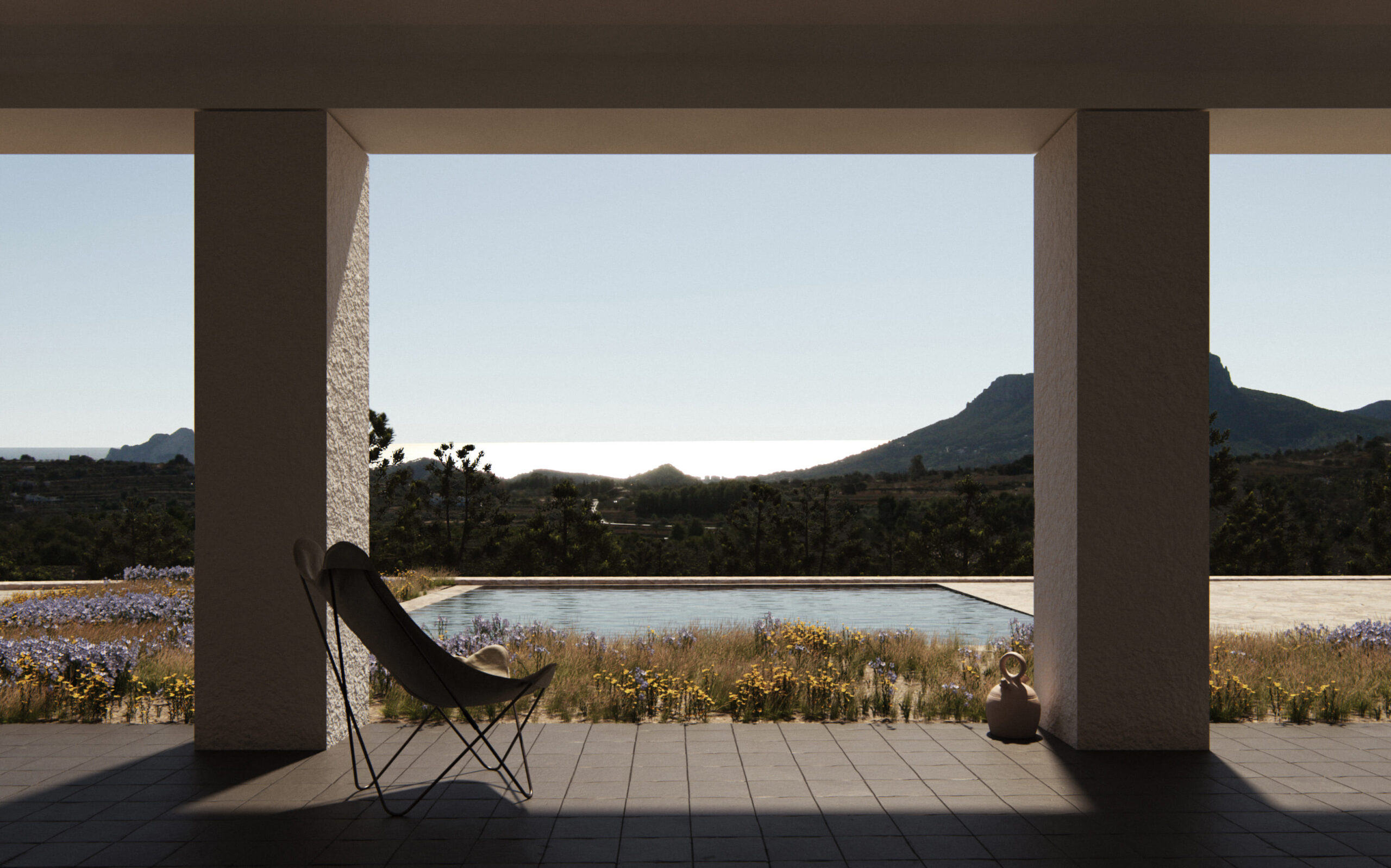 CASA 010 es una vivienda unifamiliar ubicada en Benissa, Alicante, en una extensa parcela rústica que abarca aproximadamente una hectárea y media. Situada en lo alto de una colina cercana a la Sierra de Bernia, goza de una ubicación privilegiada que le brinda vistas panorámicas del mar Mediterráneo, enmarcado por el Parque Natural del Peñón de Ifach y el entorno natural circundante, caracterizado por bancales de piedra, algarrobos y olivos.